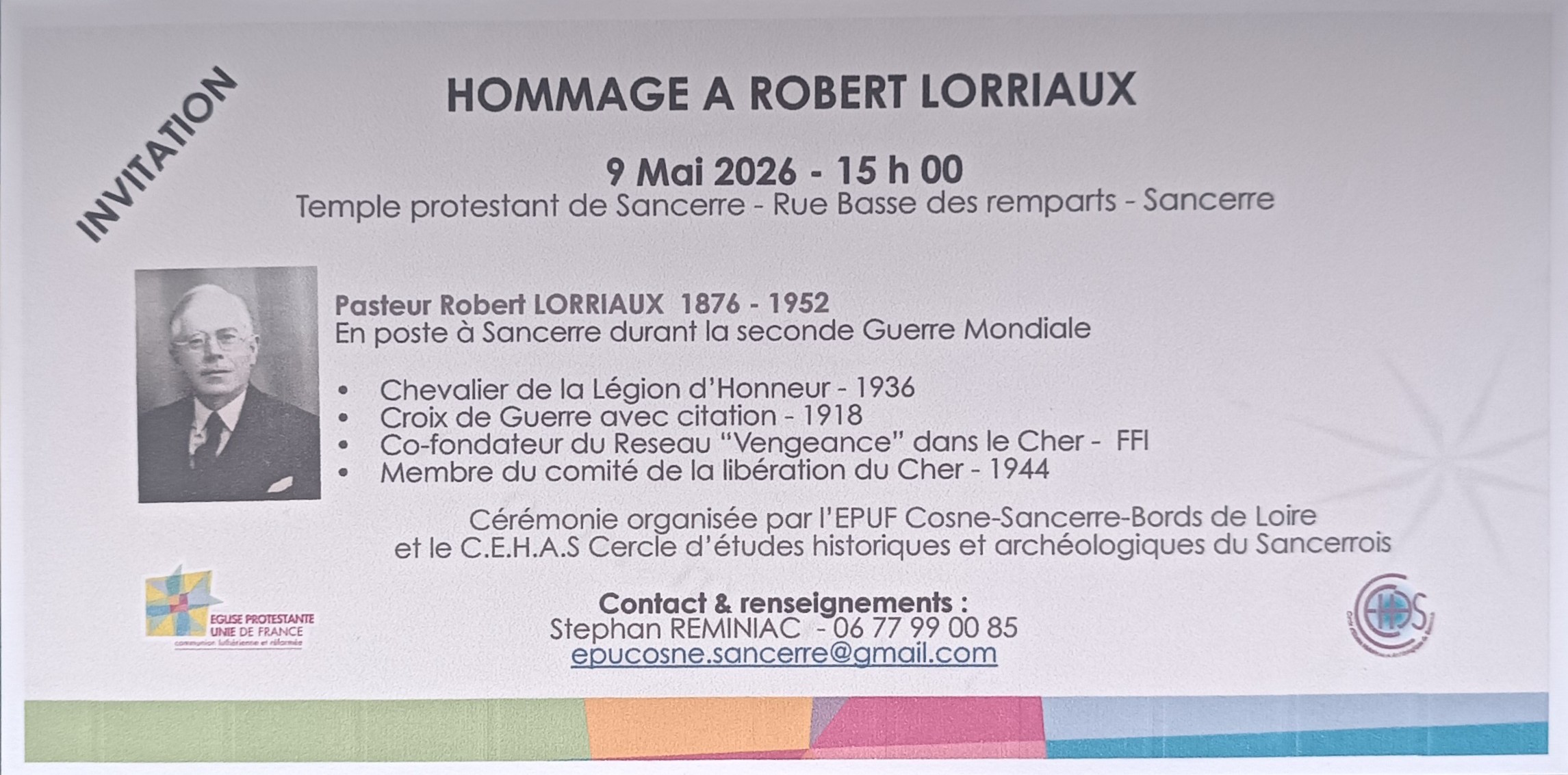 Le 9 mai 2026 à 15h, le temple de Sancerre verra se dérouler un hommage tardif au Pasteur Lorriaux.